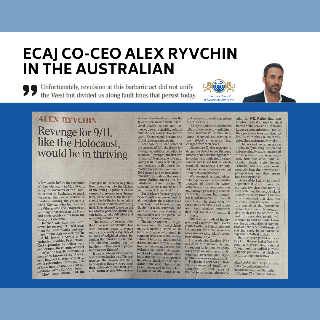 The following article has been published in The Aus­trali­an by ECAJ co-CEO Alex Ryvchin.